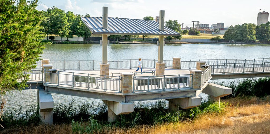 The Waco Riverwalk along the Brazos River connects several downtown attractions.